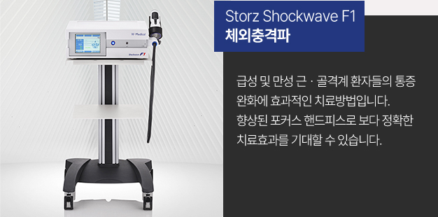 Shockwave F1 체외충격파 장비를 구비하여 통증 부위에 정밀하게 타겟팅하여